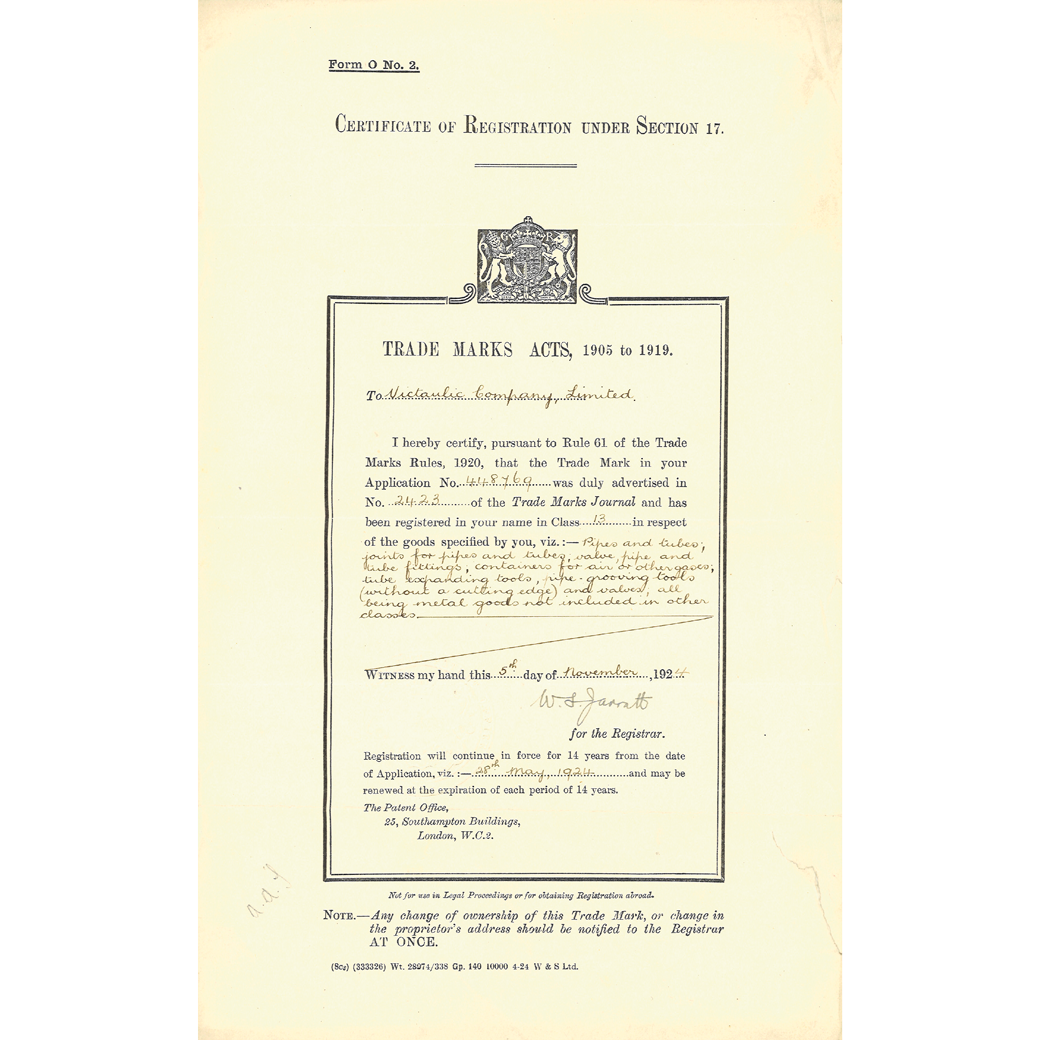 Tribe, Hele-Shaw and other investors founded The Victory Pipe Joint Co. Ltd. in London.